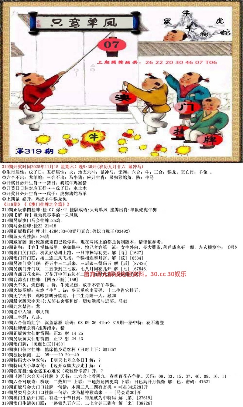 | 319期阳阴两肖【阴肖+猴鸡】开:鸡45中 |